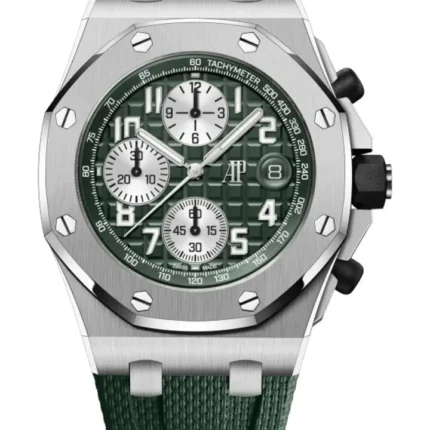 Audemars Piguet Royal Oak Offshore Selfwinding Chronograph Stainless Steel Green Strap Green Dial White Sub Dials Green Ceramic Bezel