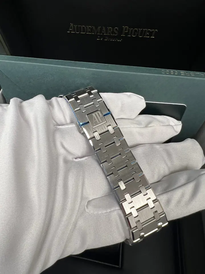 This 41 mm Royal Oak Selfwinding in stainless steel sports the collection’s ergonomic design evolution as well as a Grande