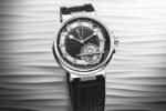 The chronograph function is indicated by the largest hand, the end of which is shaped in a subtle echo of
