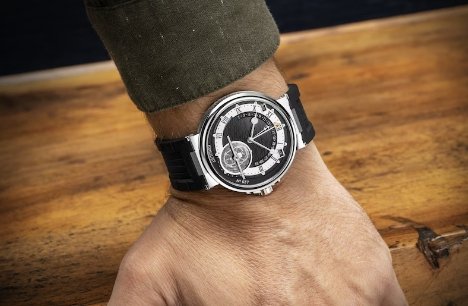 Breguet marine watch, equipped with Breguet cal.517gg movement, Breguet hands (skeletonized off-centered “moon” hands), Breguet numerals, the center of the