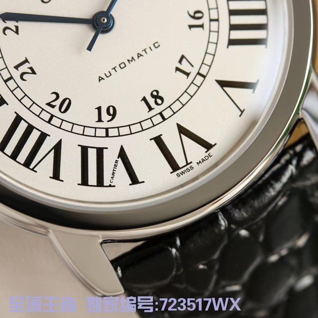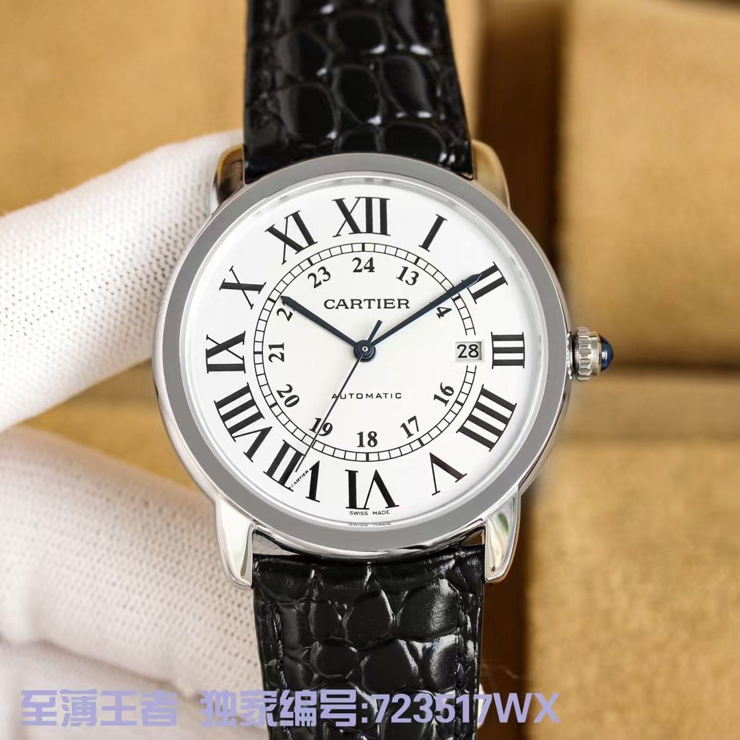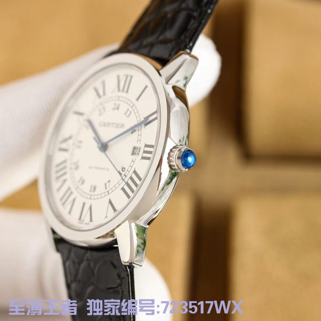 Cartier ronde de cartier London series, w6701010 simple and elegant show extraordinary temperament London solo is another unique choice of Cartier men. Using the original imported mivota9019 movement, highly consistent with the genuine needle axis! Automatic tourbillon in the assembly after a special process of noise reduction treatment, light and gentle. Accurate timekeeping, quality assurance! Also has Cartier’s highly recognizable Roman hour markers, sword-shaped burnished steel blue hands and deep blue spinel handle crown, pot cover type sapphire glass mirror, simple big three hands plus calendar function both to meet the daily use and not lose atmosphere. The seemingly modest appearance of a closer look can be seen like the bottom of the calendar processing effect, the capsule-shaped appearance of the crown, imported 9019 caliber, case diameter of 42 mm, thickness of 8.36 mm