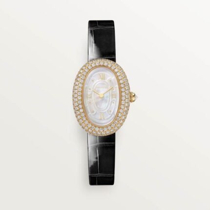 Cartier Baignoire Watch Small Model 18K Yellow Gold Quartz Small model, quartz movement, yellow gold, diamonds, leather strap