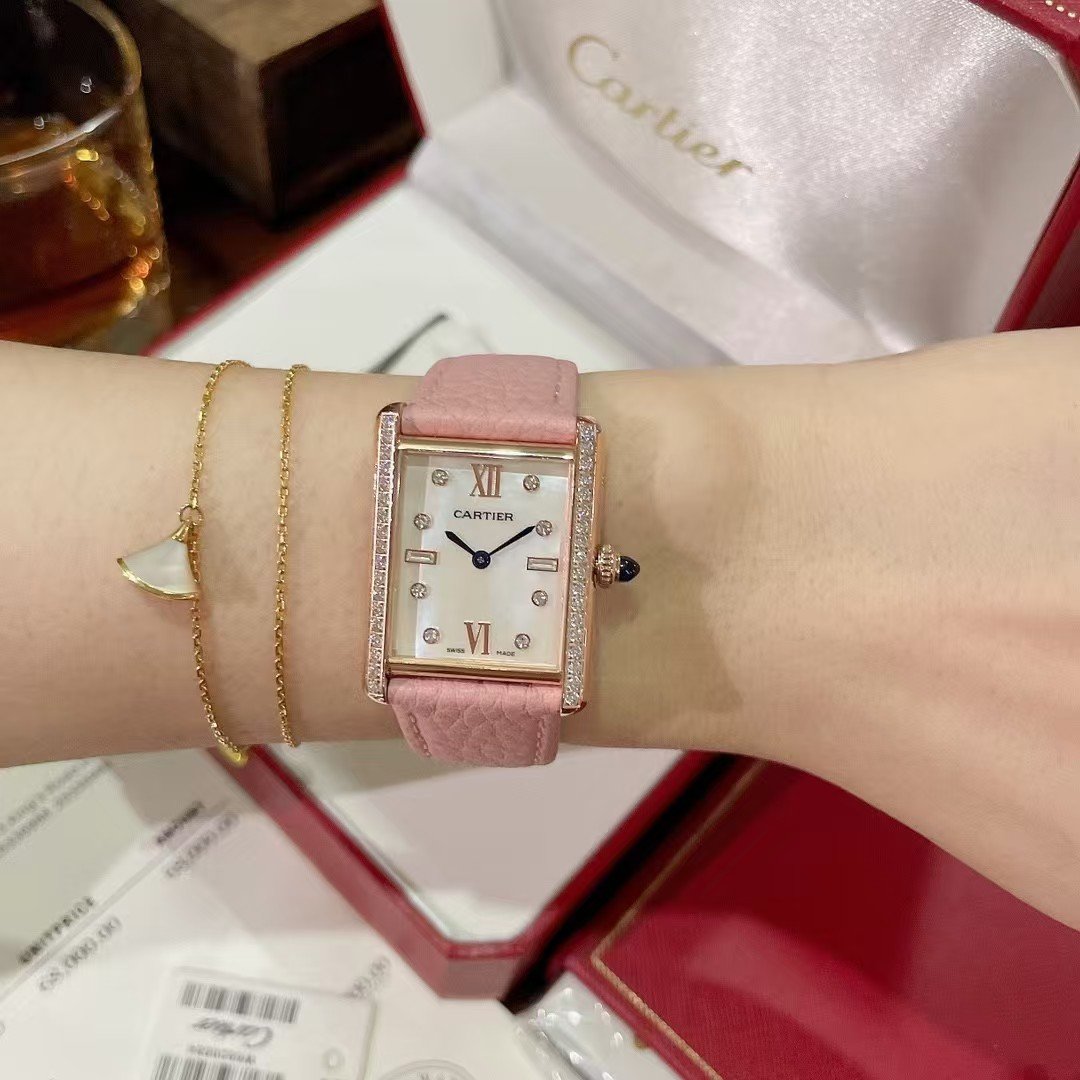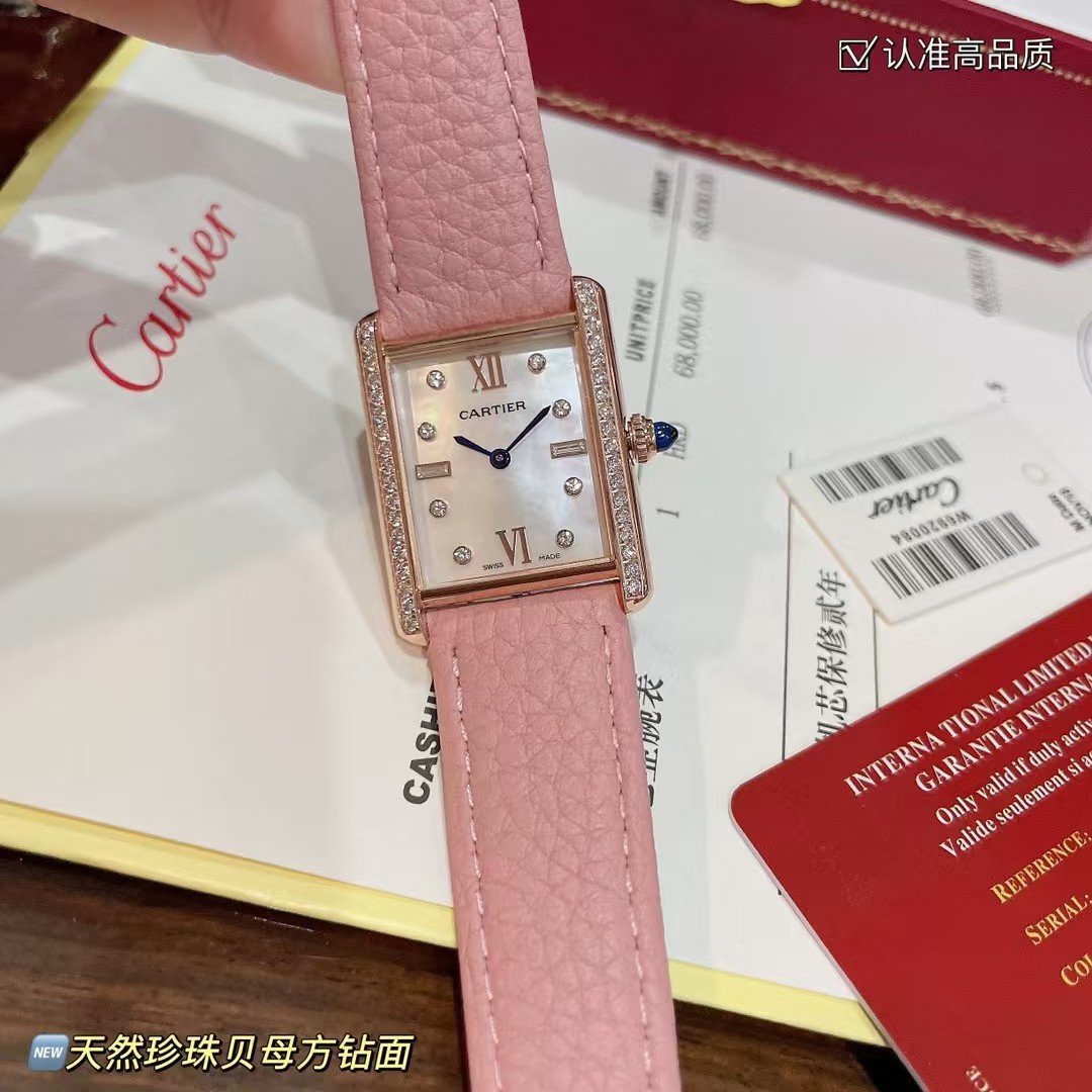 Cartier tank solo square watch new design to defeat the traditional beauty out of a new height like square watches pro can choose this Cartier tank cost-effective Swiss quartz movement versatile size 25.5×33.7mm using high-grade mother-of-pearl to produce an elegant and exquisite dial dial luxury set Austrian aqua square diamonds perfect fusion of texture nice glittering glamorous dazzling recognition of high quality!