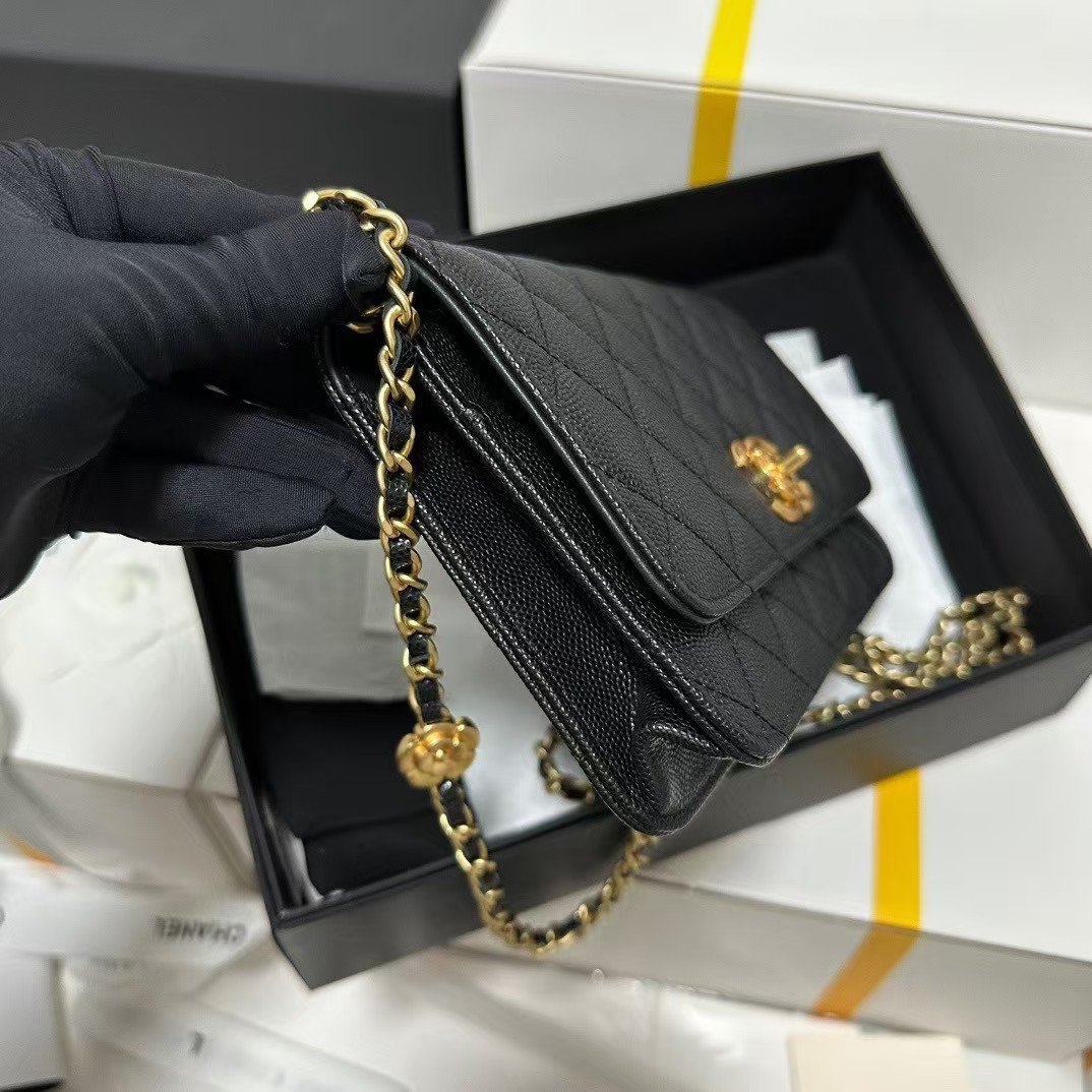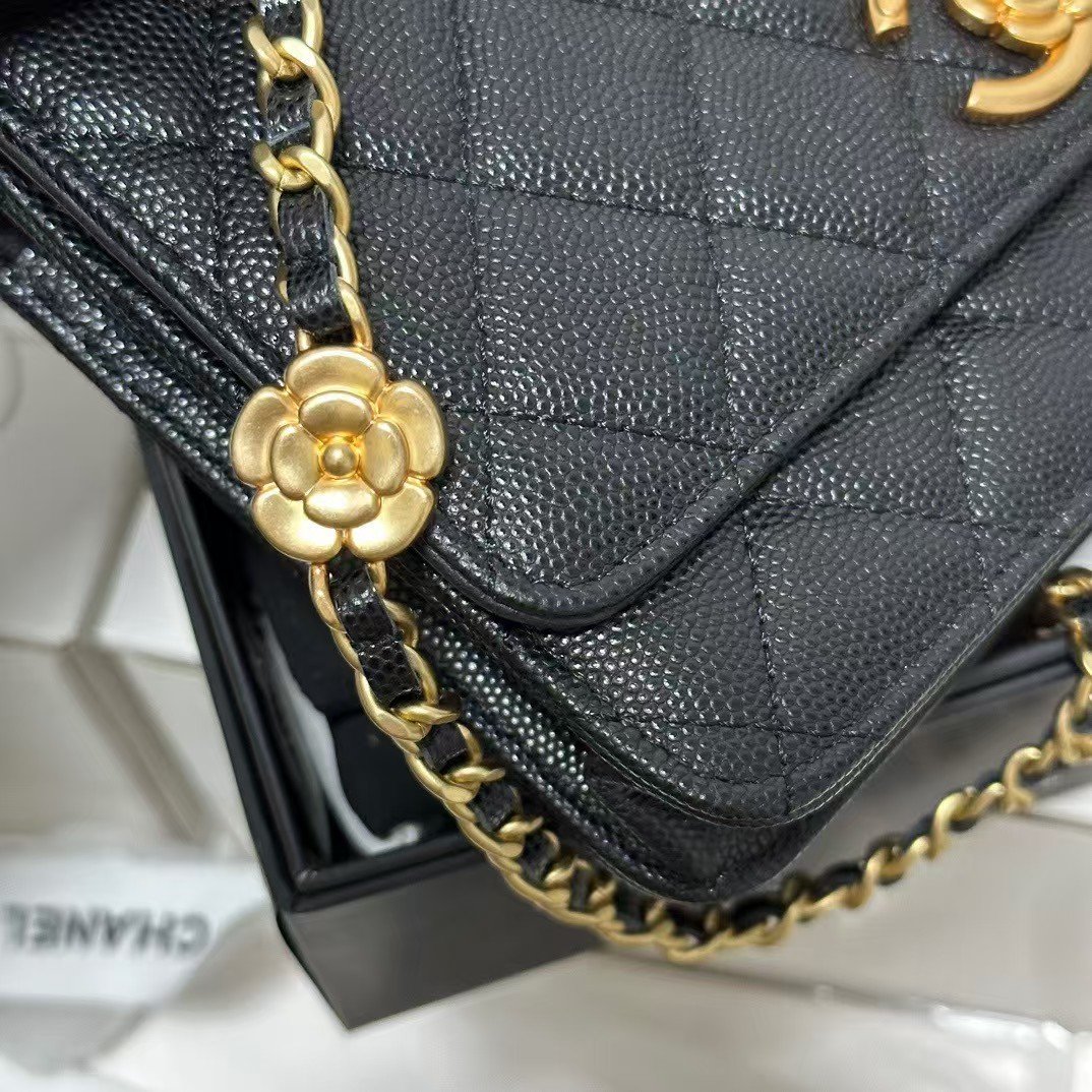 Limited Camellia design hardware buckle Made of ball-grain cowhide, vintage metal color, metal cc on the chain, practical and delicate