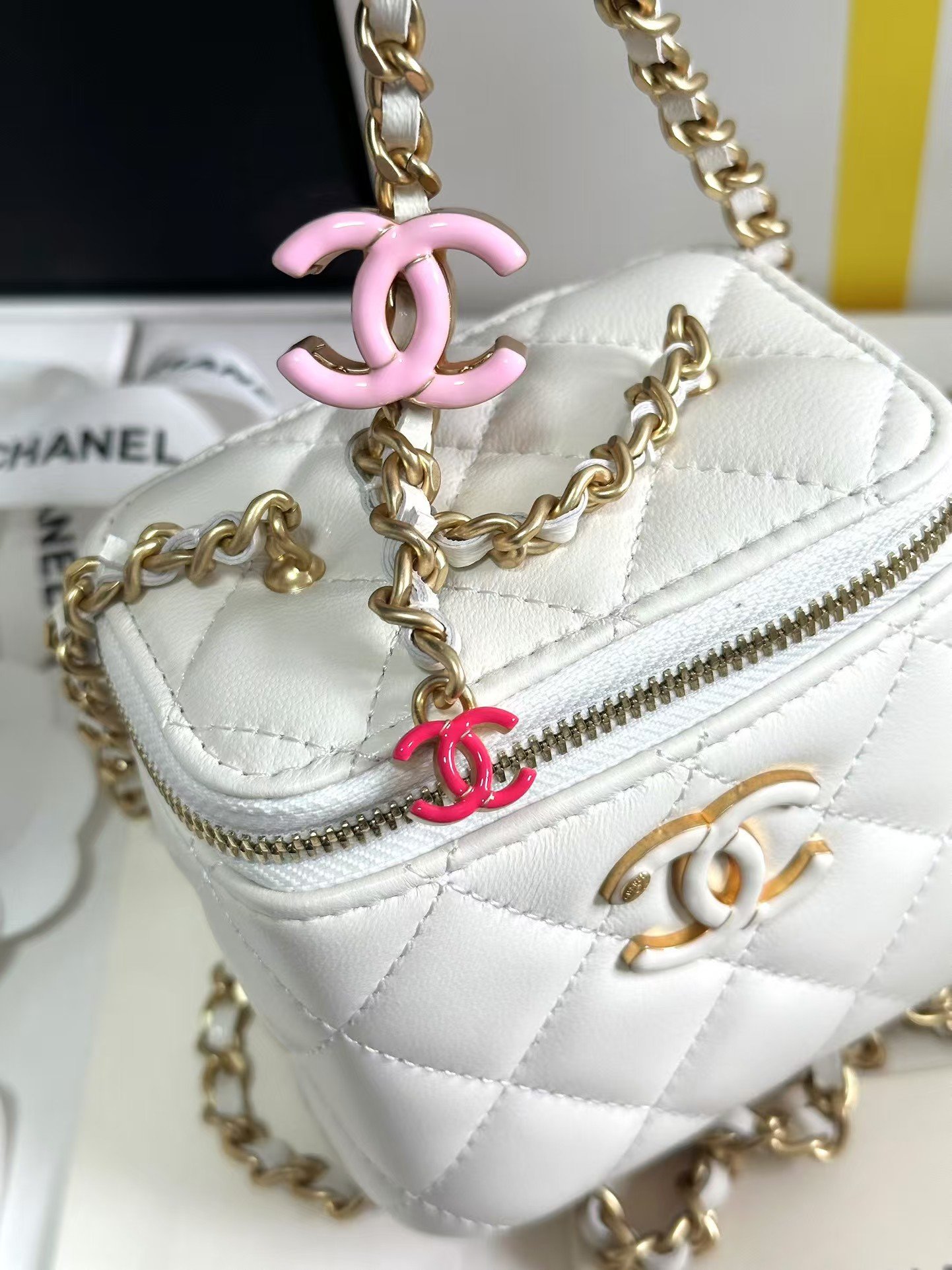 The new cosmetic case hardware is too advanced black gold with white enamel adjustable buckle shoulder strap adjustable too silky smooth capacity just the right size is so beautiful!