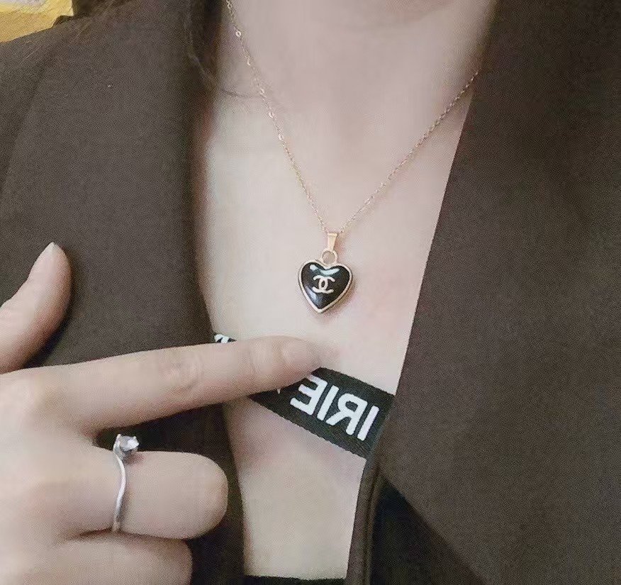 Home Accessory Chanel black onyx peach heart double c necklace, fashionable and versatile, delicate and sweet