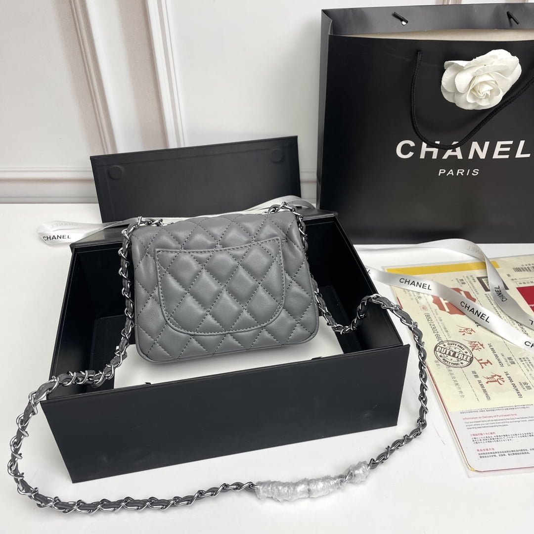 Chanel cf Square Fat 1115 sheepskin leather grey size: 18*14*7cm