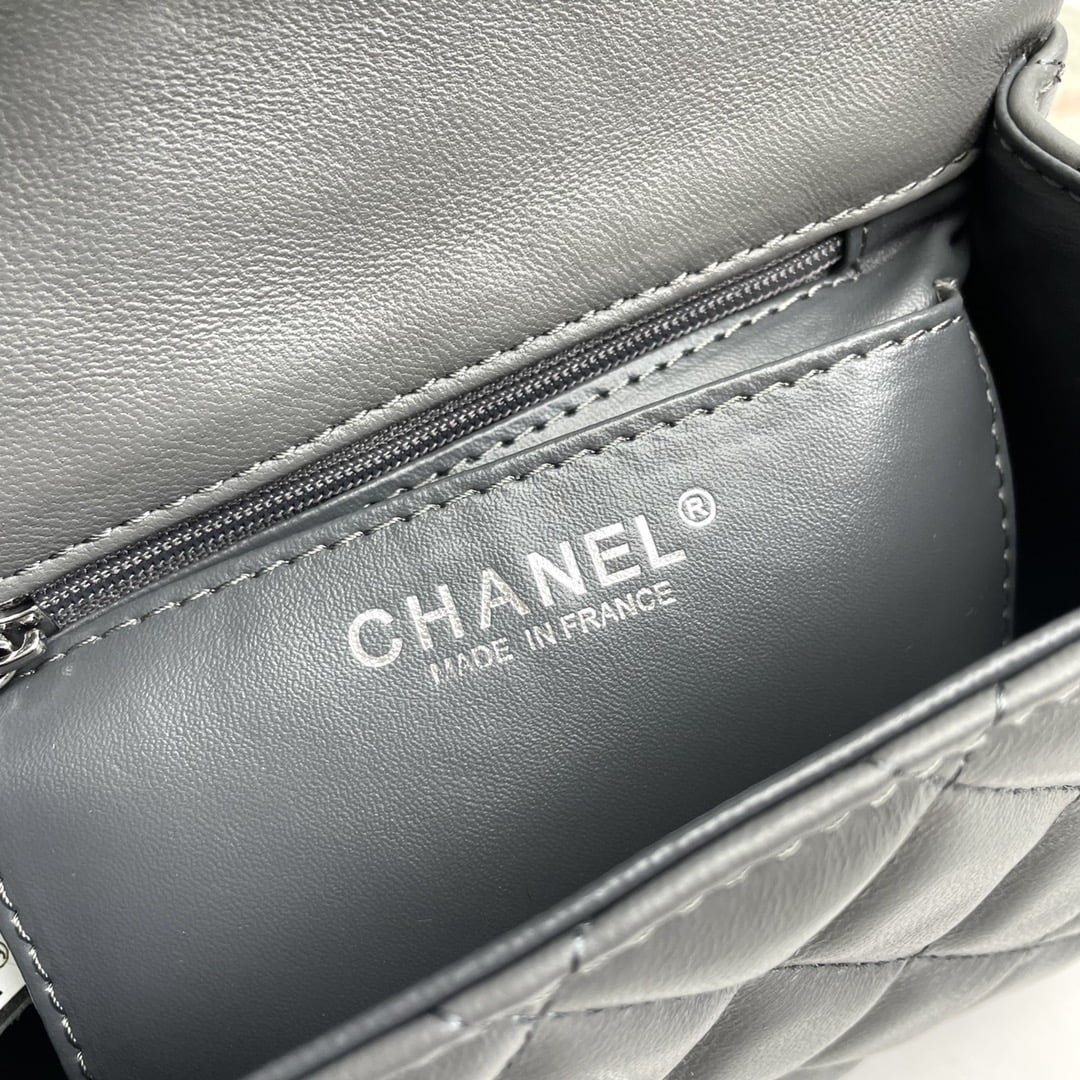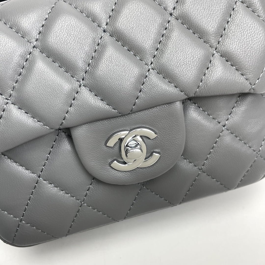 Chanel cf Square Fat 1115 sheepskin leather grey