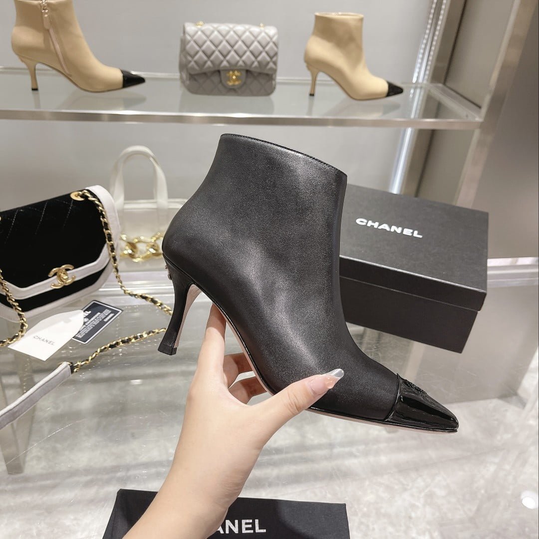 [Chanel] new autumn and winter women’s boots are comfortable on the feet. the fabric is imported cowhide + patent leather. the foot sheepskin is padded inside. the heel is 75 mm. the yard number is 34-41 pieces (34 minutes 41 customized) leather outsole