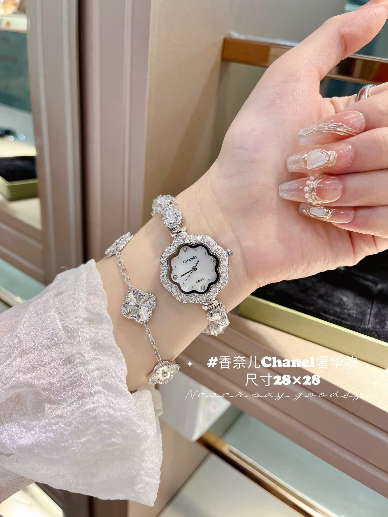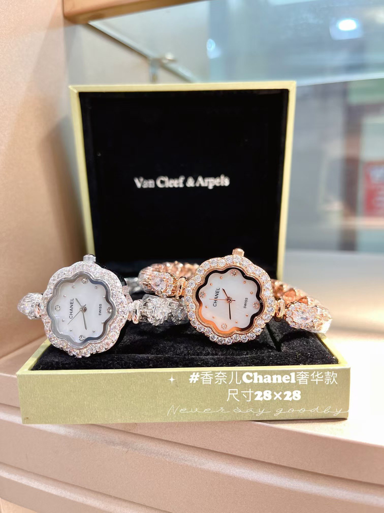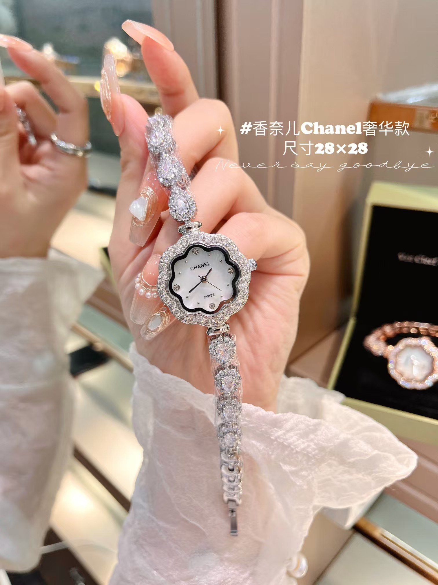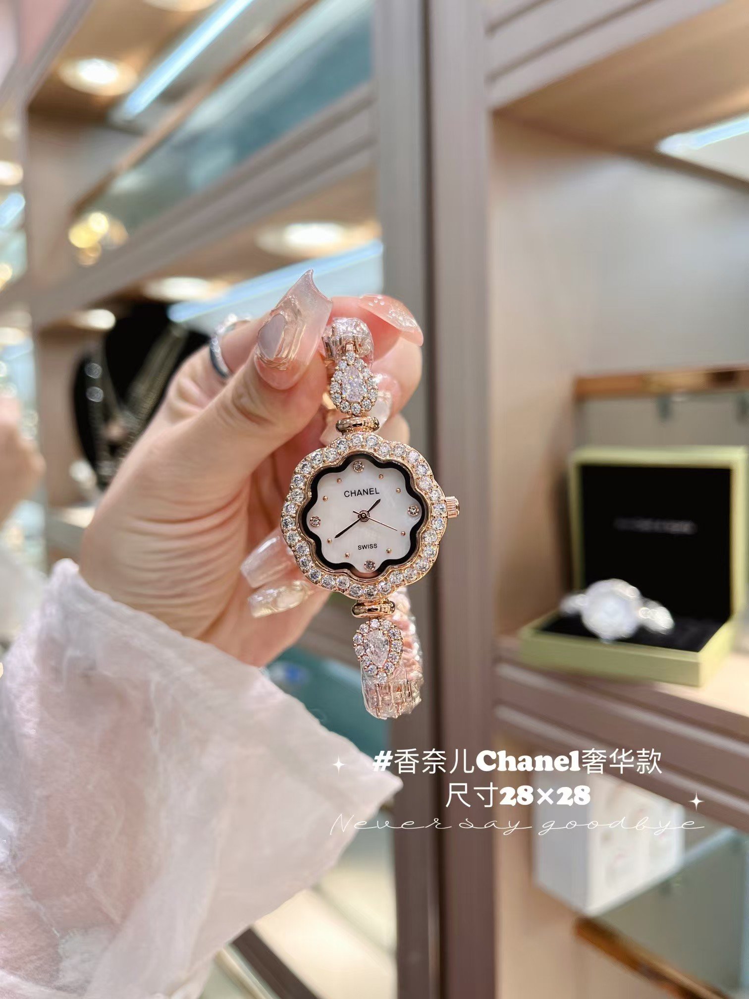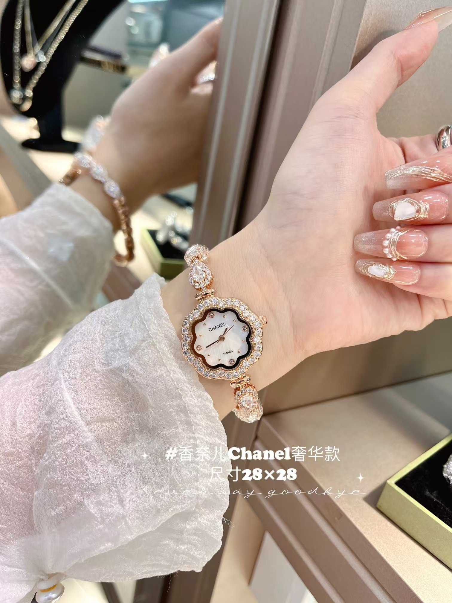 Chanel Noble Maiden watch: exquisite luxury: the entire watch using mosaic technology: stainless steel case: mother of pearl; encased in a flow of clear rhinestones! Shell diameter 28x28mm actual photo to create works of art way to focus on each watch!