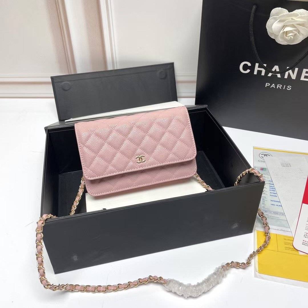 Chanel chain crossbody bag Cowhide with diamond lattice caviar Pink A50076 size: 18*10.5*3.5cm