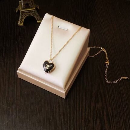 Chanel black onyx peach heart double c necklace, fashionable and versatile, delicate and sweet New 2024!