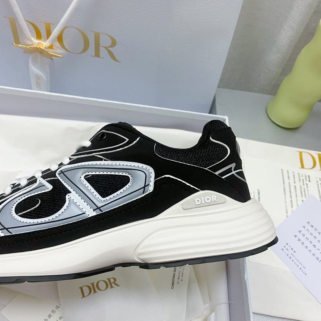 The new B30 sneakers conform to the trend of the retro market Dad Shoes style shoes The Dior logo on the tongue also indicates that this pair of shoes is B30 model! B30 uses fine texture leather and mesh fabric material to splicate into the shoe body. the shoe body on both sides of the prominent letter CD to indicate identity. the shoe body many lines outline details make the shoe look not so monotonous. vintage flavor
