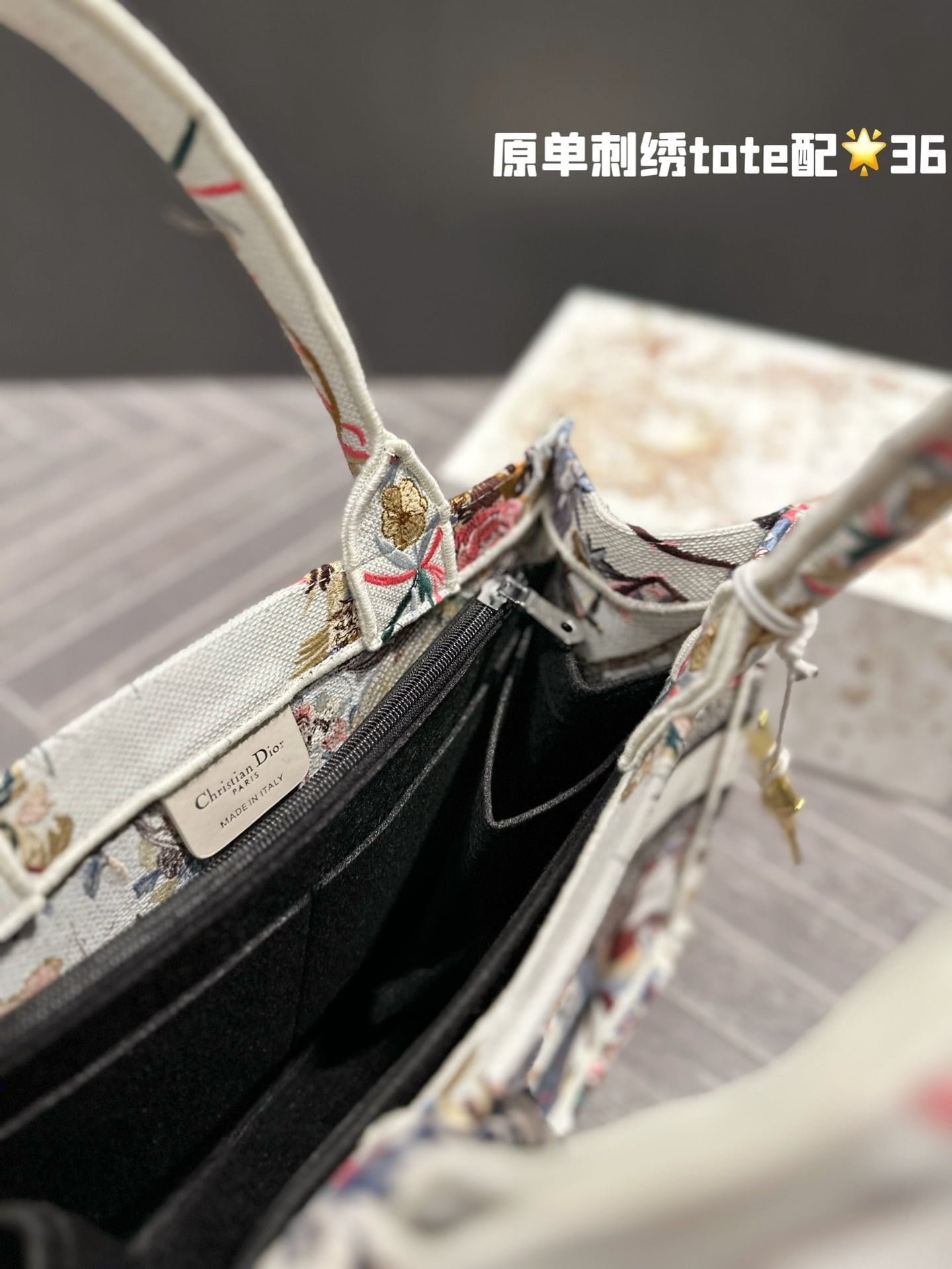 Dior embroidery tote bag size: 36cm