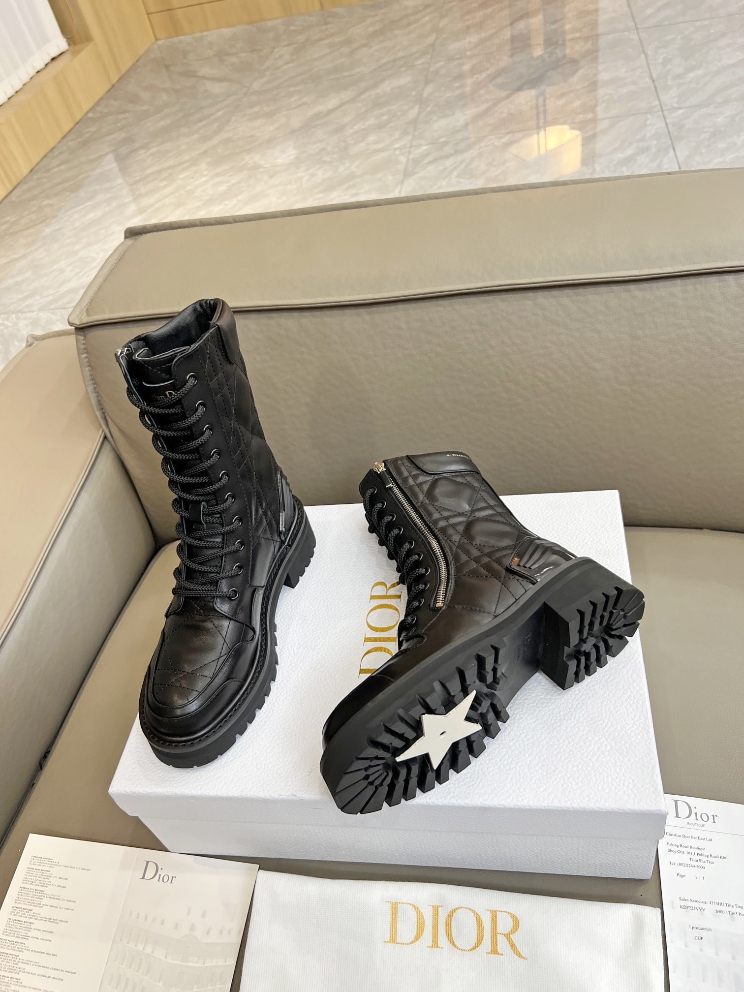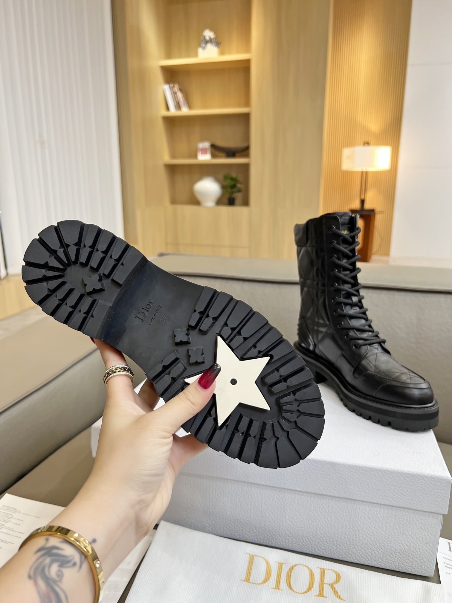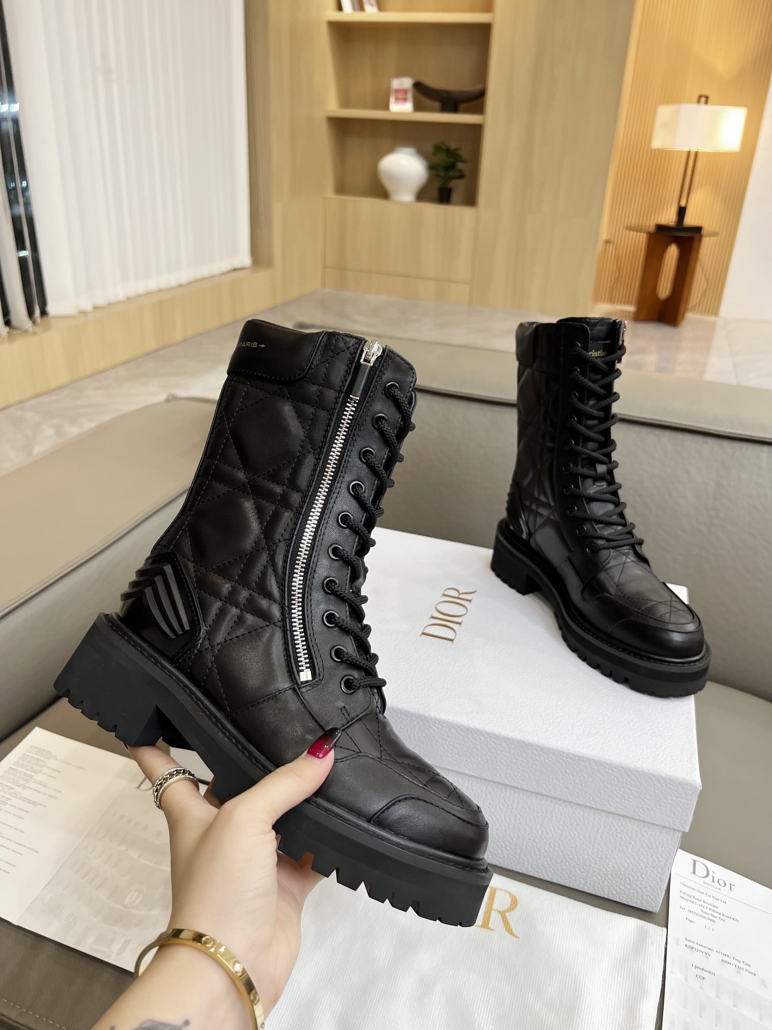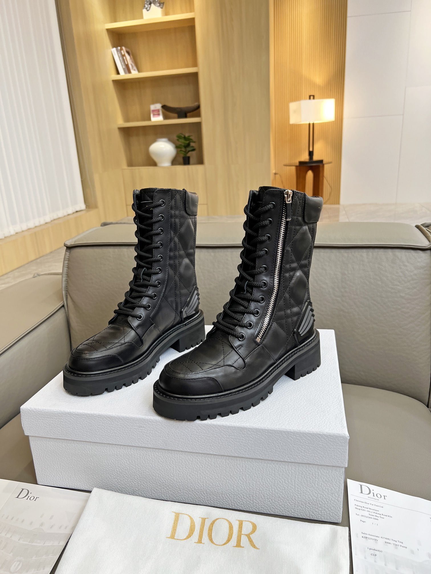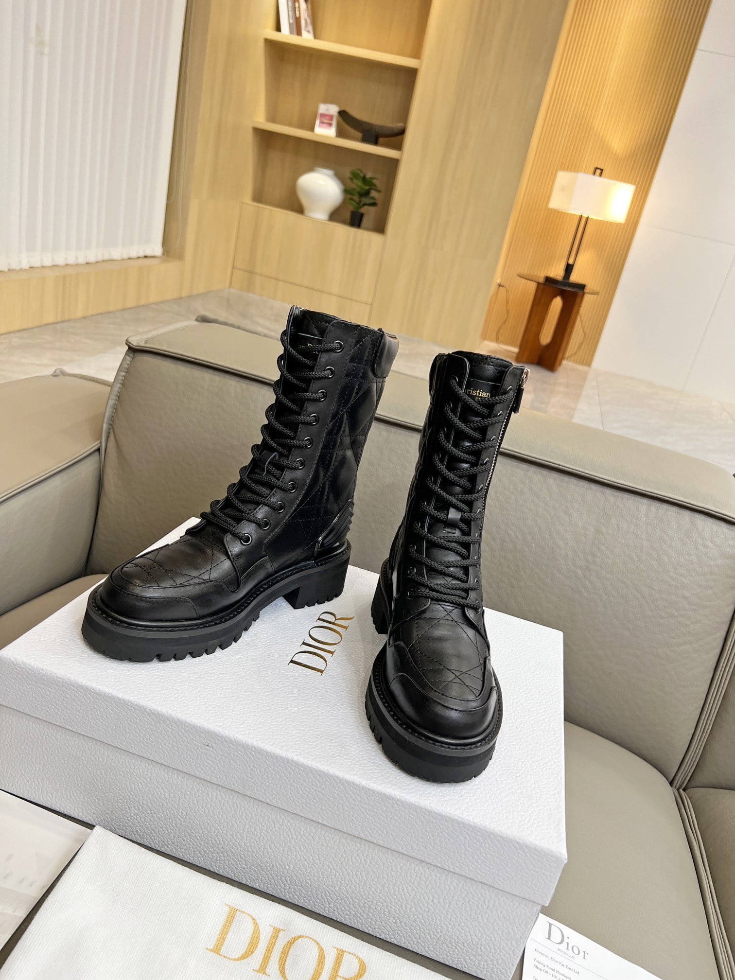 Martin boots. the original purchase and development of gold “Christian Dior” to highlight the brand charm. ▪️ fabric: full-grain calf leather inner: imported sheepskin. color: black and white. size: 35-41