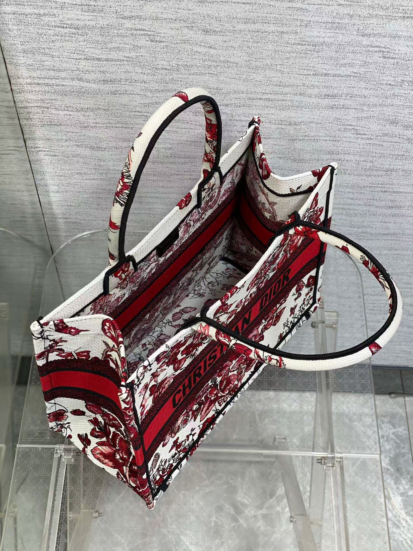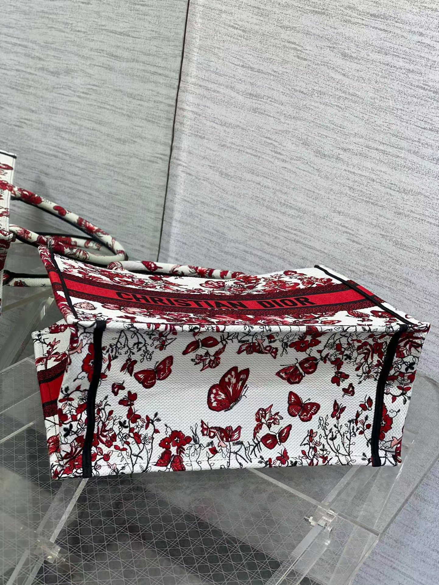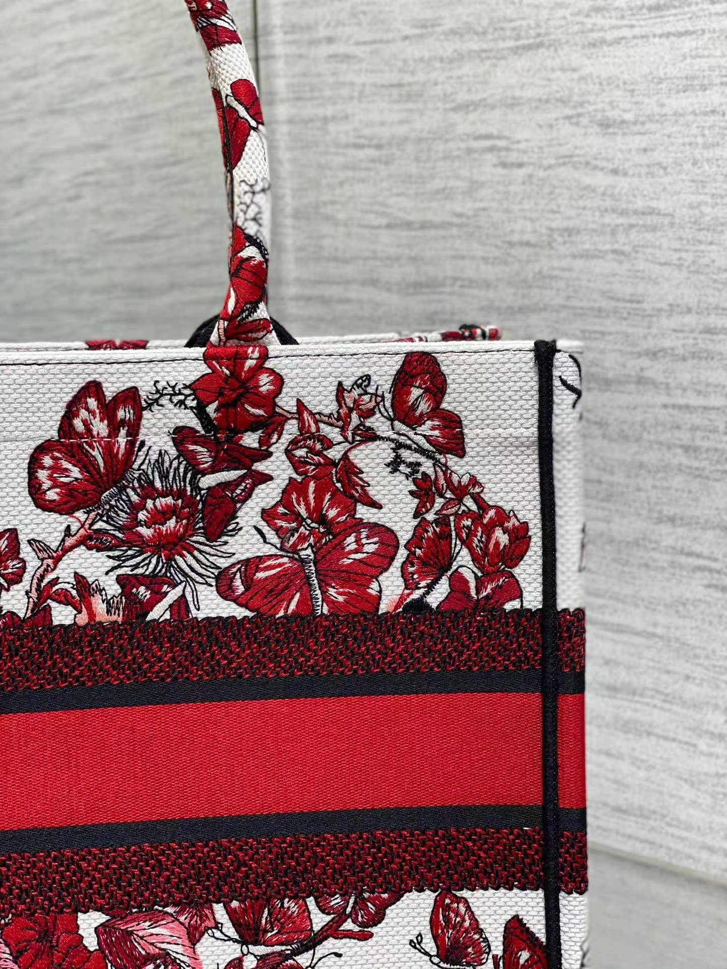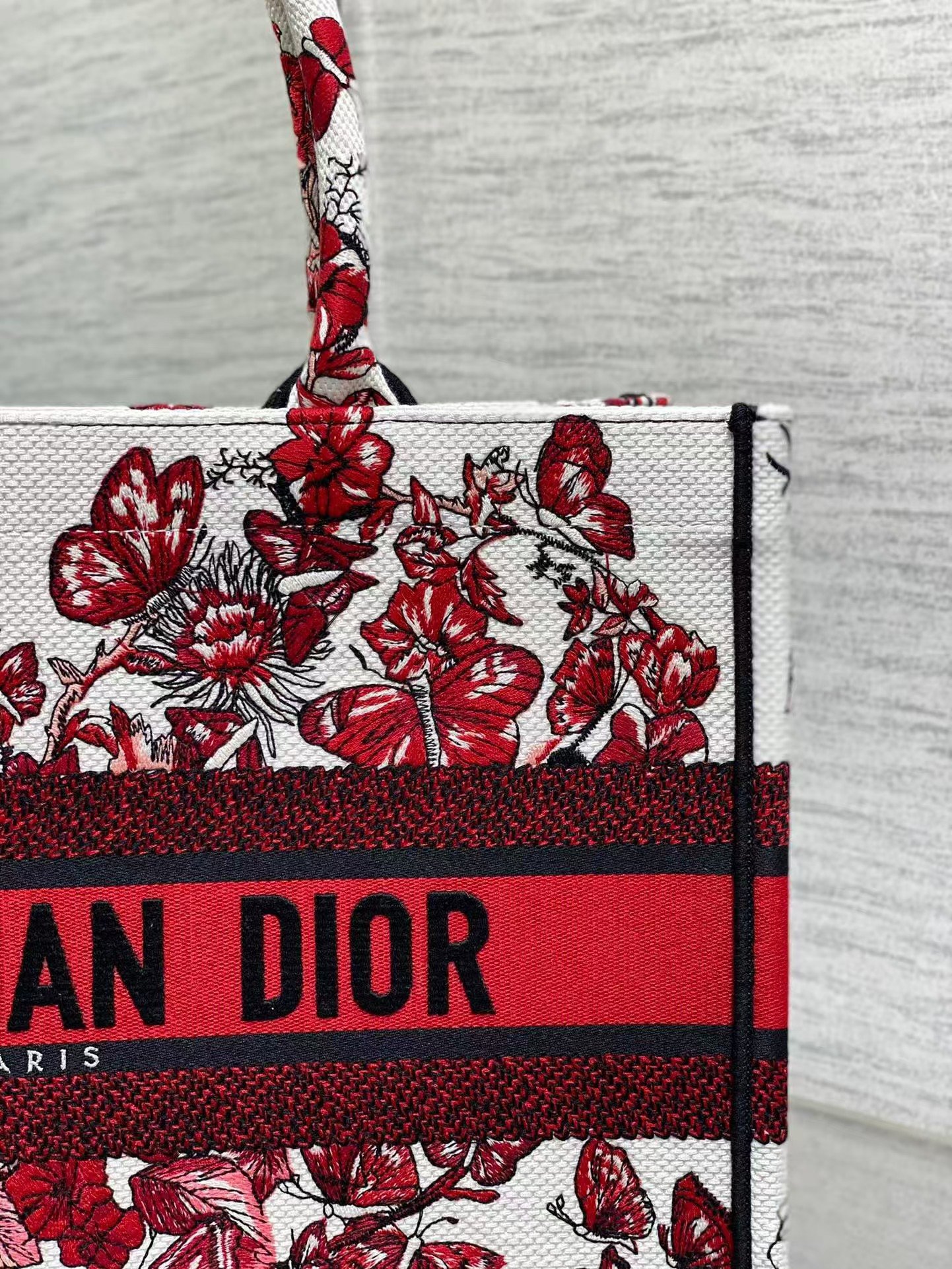 Dior top original single tote New Year love series, to love and romantic tribute, white and red interlaced with love pattern embroidery, showing the bouquet of flowers and butterflies seductive style, iconic letters logo, highlighting the exquisite craftsmanship, capacity is very large, self-use ultra-lightweight, travel and tourism must have models!