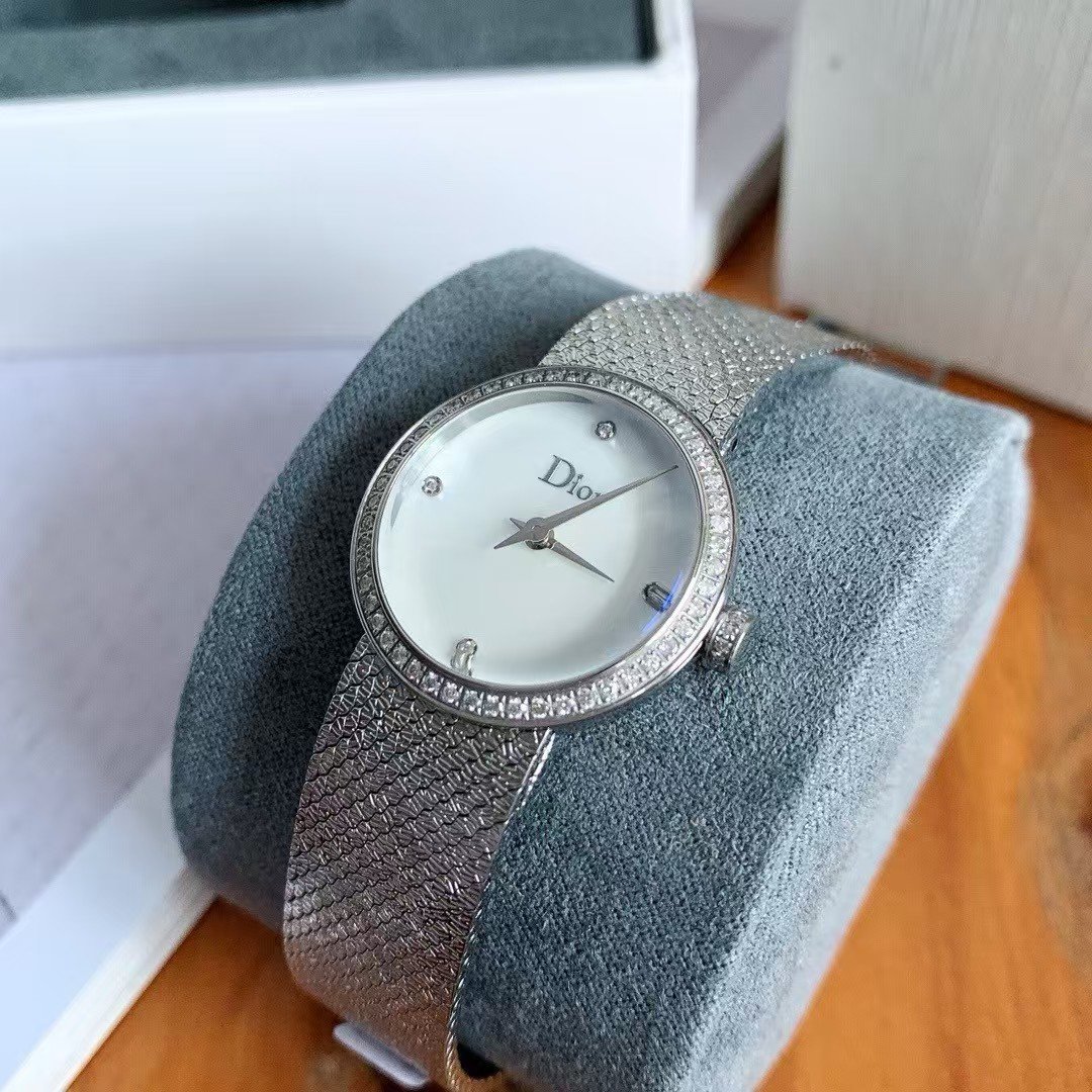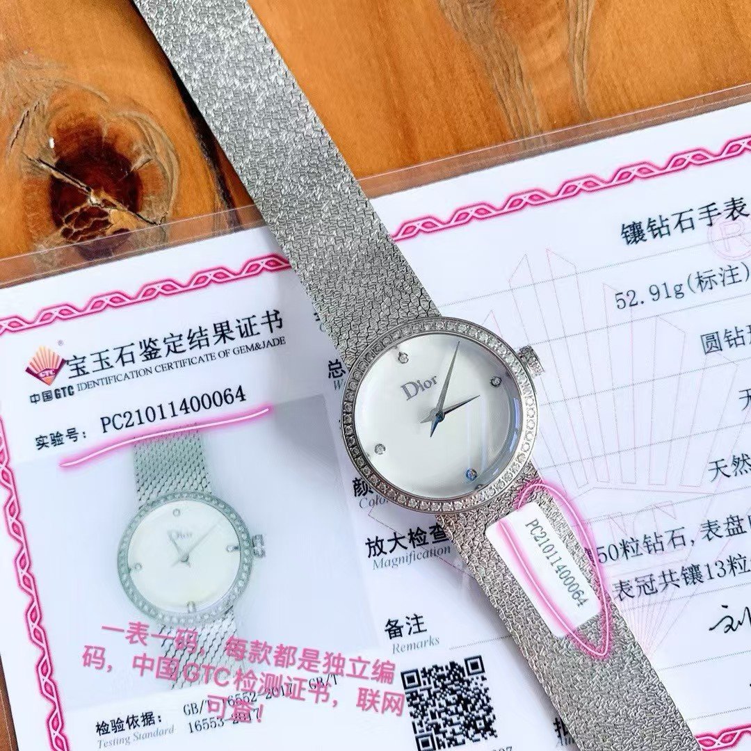 Vividly presenting the soul of Dior’s watchmaking, precious and elegant style! The case bezel is set with 50 vs1.4 South African natural and genuine diamonds, the mother-of-pearl dial is matched with 4 genuine diamonds, and the crown is set with 13 natural and genuine diamonds. Wonderful details:[1Milanese mesh crafted steel bracelet, super showy, perfect fit for fairies’ slim wrists, bulingbuling bright and shiny in the light! [2bulingbuling flash of the watch, really is the heart of the fairies love! 3 Diameter 25 mm! [4eta quartz movement! [5Pot-shaped sapphire glass (blue light anti-glare effect)!!!6Case crown buckle set with diamonds, a-grade mother-of-pearl dial, polished dauphine hands!