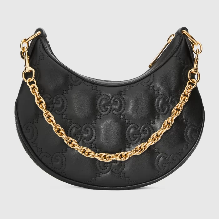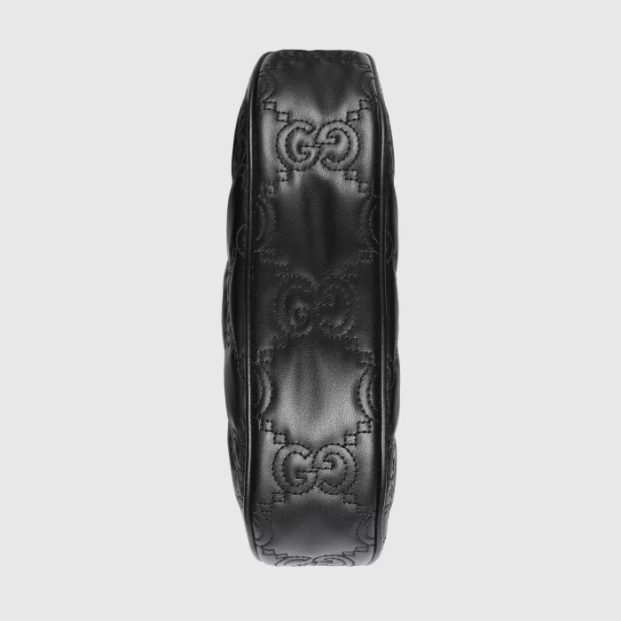 • The Pre-Fall 2023 collection captures the essence of Gucci. Colors, prints, and emblems appear consistently across time-honored silhouettes, demonstrating the House’s ability to reinvent signature pieces season after season. This compact mini bag is presented in black GG Matelassé leather and further enriched with a Double G emblem.