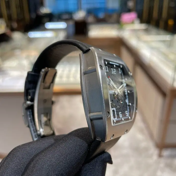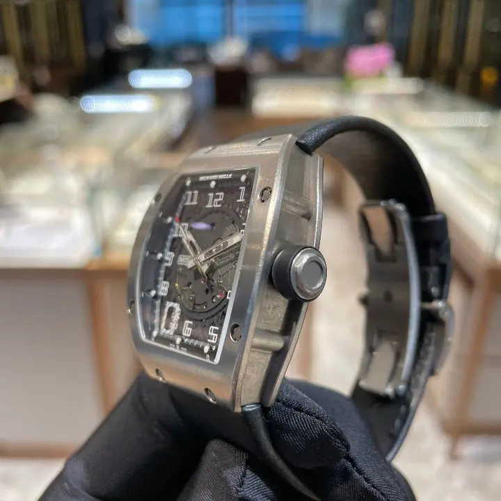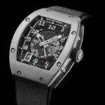 The RM005 Ti features a titanium case and Automatic winding movement with hours. minutes. seconds. date and variable-geometry rotor. Developed by Richard Mille. this is the brand’s first Automatic movement. The combination of these features enables precision technology and reliable timekeeping for a superior wristwatch experience.
