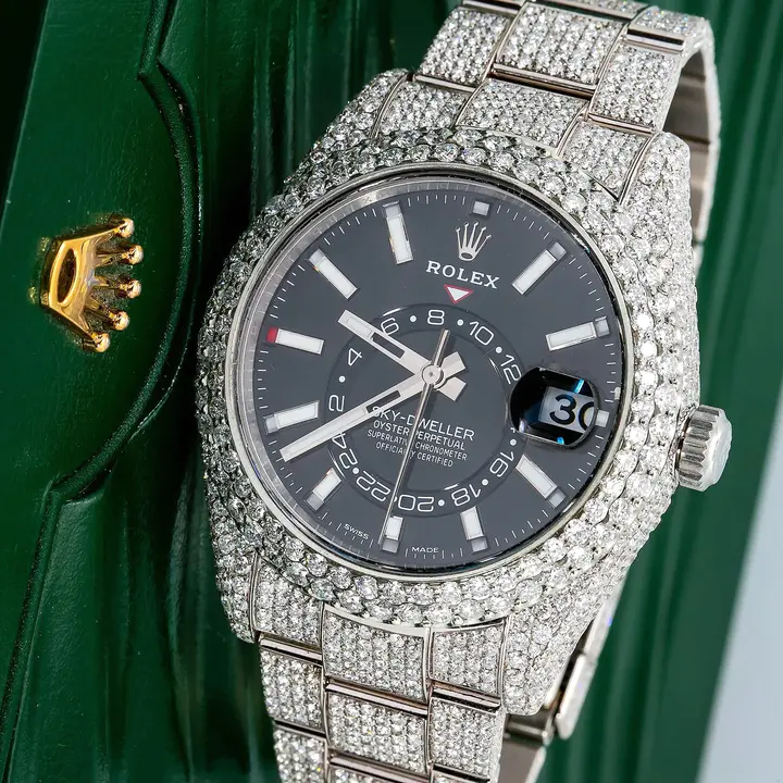 Be the first to review “ROLEX SKY DWELLER 42MM 326933 SILVER BLACK DIAL FULLY ICED OUT DIAMOND OYSTER BRACELET” Cancel reply