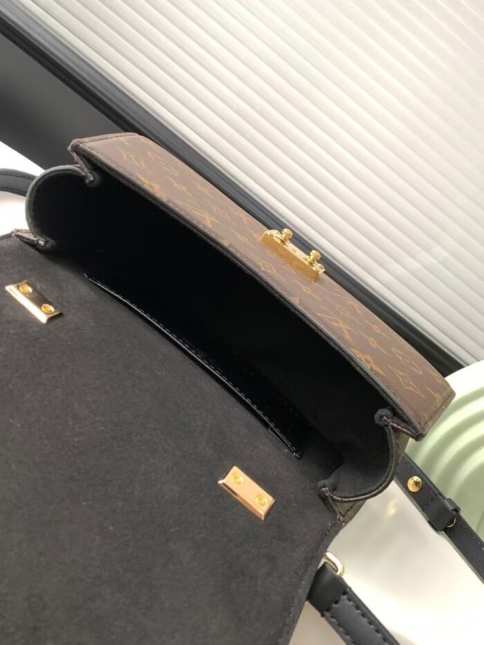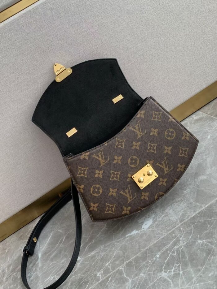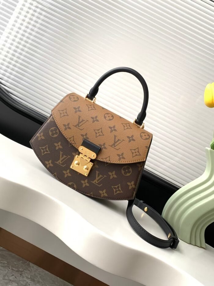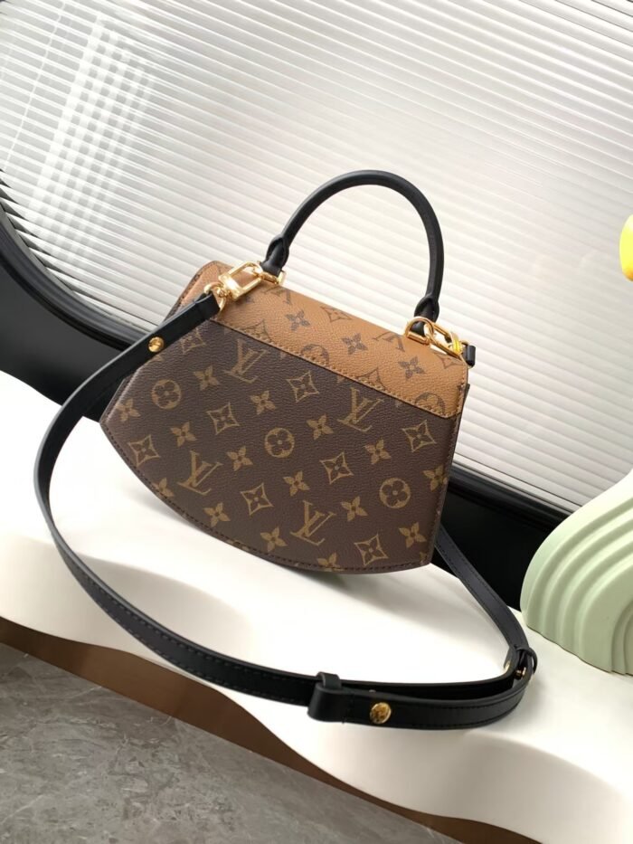 The LV tilsitt bag in monogram and monogram reverse canvas is a fine urban accessory. Originating from an LV handbag from 1988, it is recognisable by its geometric curved edges. The tactile straps and the top swivel handle are particularly practical. The flap features the iconic s-lock closure.