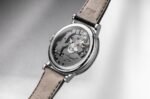 Faithful to the classic design elements of the collection, the movement offers a power reserve of up to 50 hours. The small, delicately hand-guillochéd dial reveals almost all the components of the centerplate, including the bridges, the wheel train, the escapement and the famous “parachute” shock absorbers in steel, which are hand-beveled.