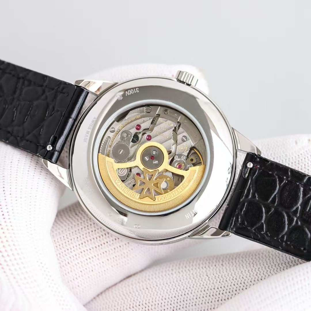 [Case] The watch is special! Measuring 40mm, it features a triple intaglio-engraved decorated case body that shows off its vintage style, with a beautifully curved pot glass that gives it an overall literal texture! [Movement] The style adopts a 4400gcl copy of the automatic mechanical customized movement! Stable operation! Full true function! Through the transparent caseback can appreciate the excellent movement polishing process. [Dial] strive for perfection, 1:1 restoration of the vintage face plate, with the month, day of the week, calendar, true solar phase 4 functions, true hot stamping of the solar phase disk, its overall more close! Buckle] The watch is made of Italian cowhide leather for a more comfortable fit on the wrist! Buckle back printed “Vacheron Constantin” classic logo. Denton” classic logo printed on the back of the buckle, showing the noble temperament of the watch! Suitable for a variety of business occasions, simple and refined without losing elegance!