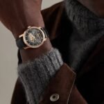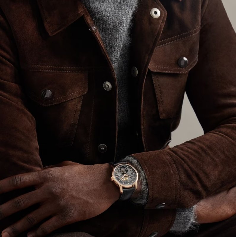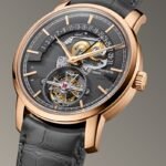 Avant-garde aesthetics, mechanical rigor, and a desire to share creativity and expertise are at the heart of this Traditionnelle Tourbillon Retrograde Date Skeleton. The aperture, in shades of rocky gray with a NAC finish, reveals the structure of the 2162 R31 caliber on both sides of the watch, making its mechanical power readily apparent. The retrograde calendar display and the tourbillon complement each other in a style that is both functional and contemporary.
